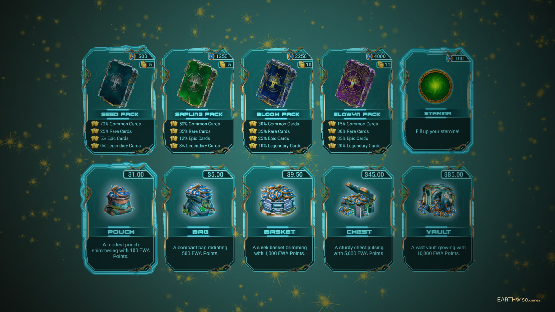 It took time… It took patience… It took a few battles with Moloch behind the scenes… But the branches have grown. You are now able to top up and use your EWA Points to purchase Card Packs and Stamina in our Shop, fuse and upgrade your cards in your Library, mint them as NFTs, and list and trade them on our Marketplace. To access the Elowyn marketplace, you'll need to use the same login method as you used for playing the game.